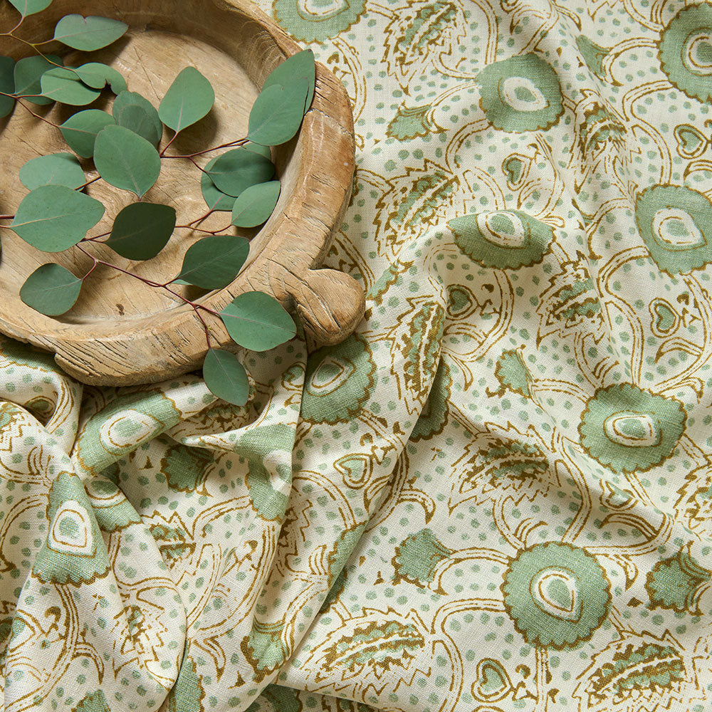 As well as its fantastic eco credentials and its durability, linen is renowned for its exceptional breathability and natural temperature regulation, which makes it ideal for warm climates. Linen fabric holds the pattern beautifully and it drapes superbly, so it is a wonderful choice for soft furnishings such as curtains. Linen fabrics have a subtle texture that brings a tactile quality and a refined simplicity to any scheme.