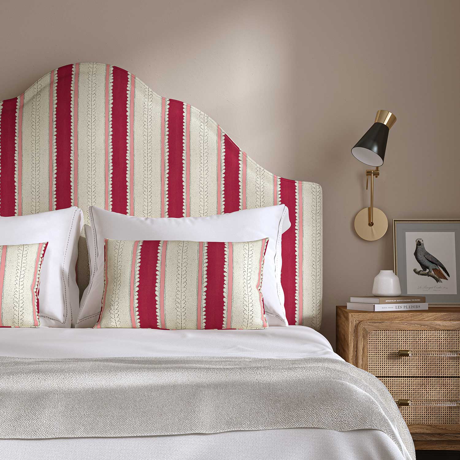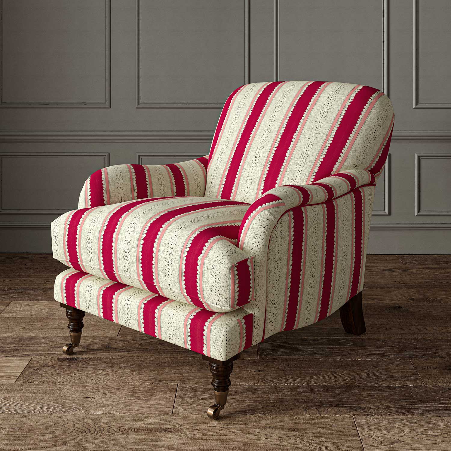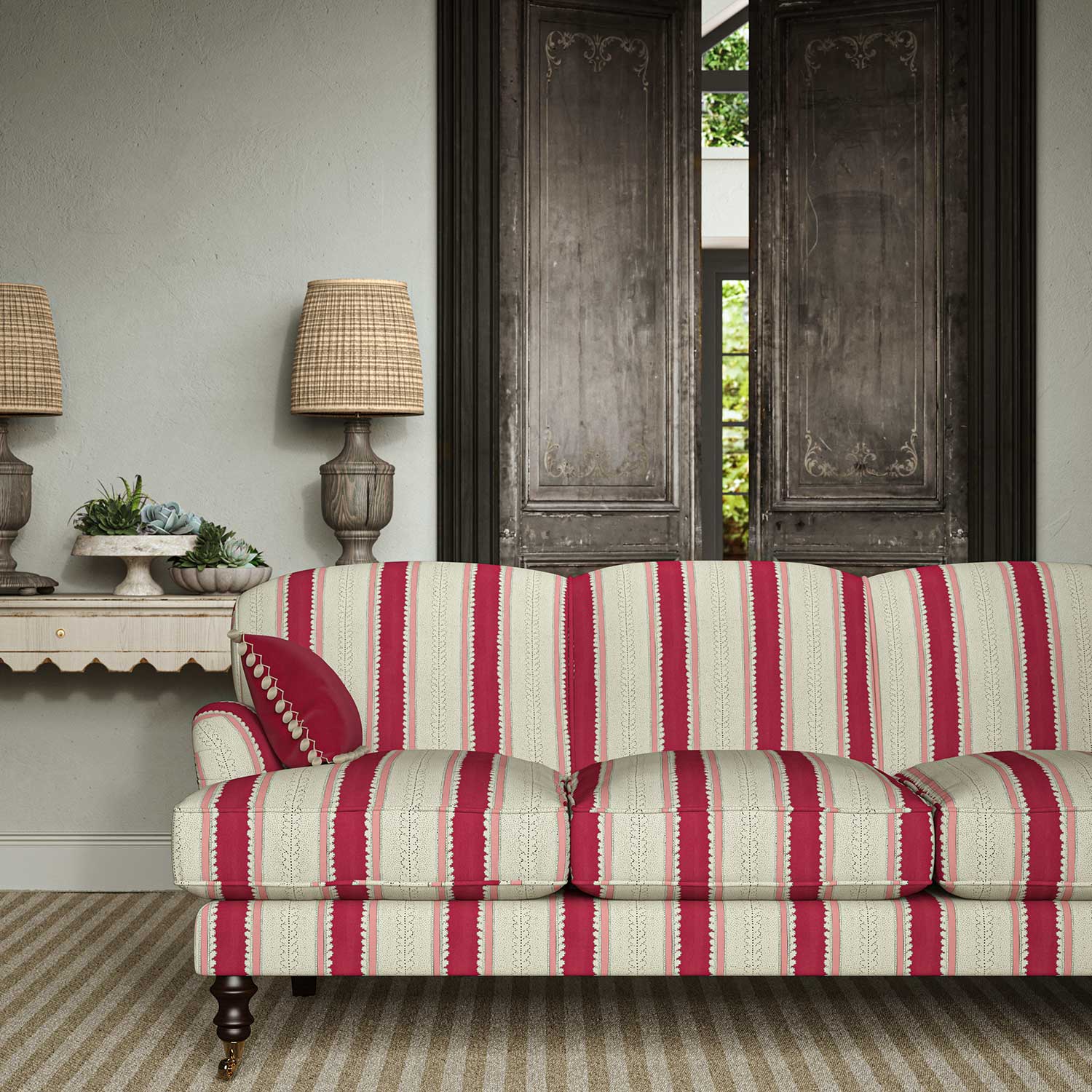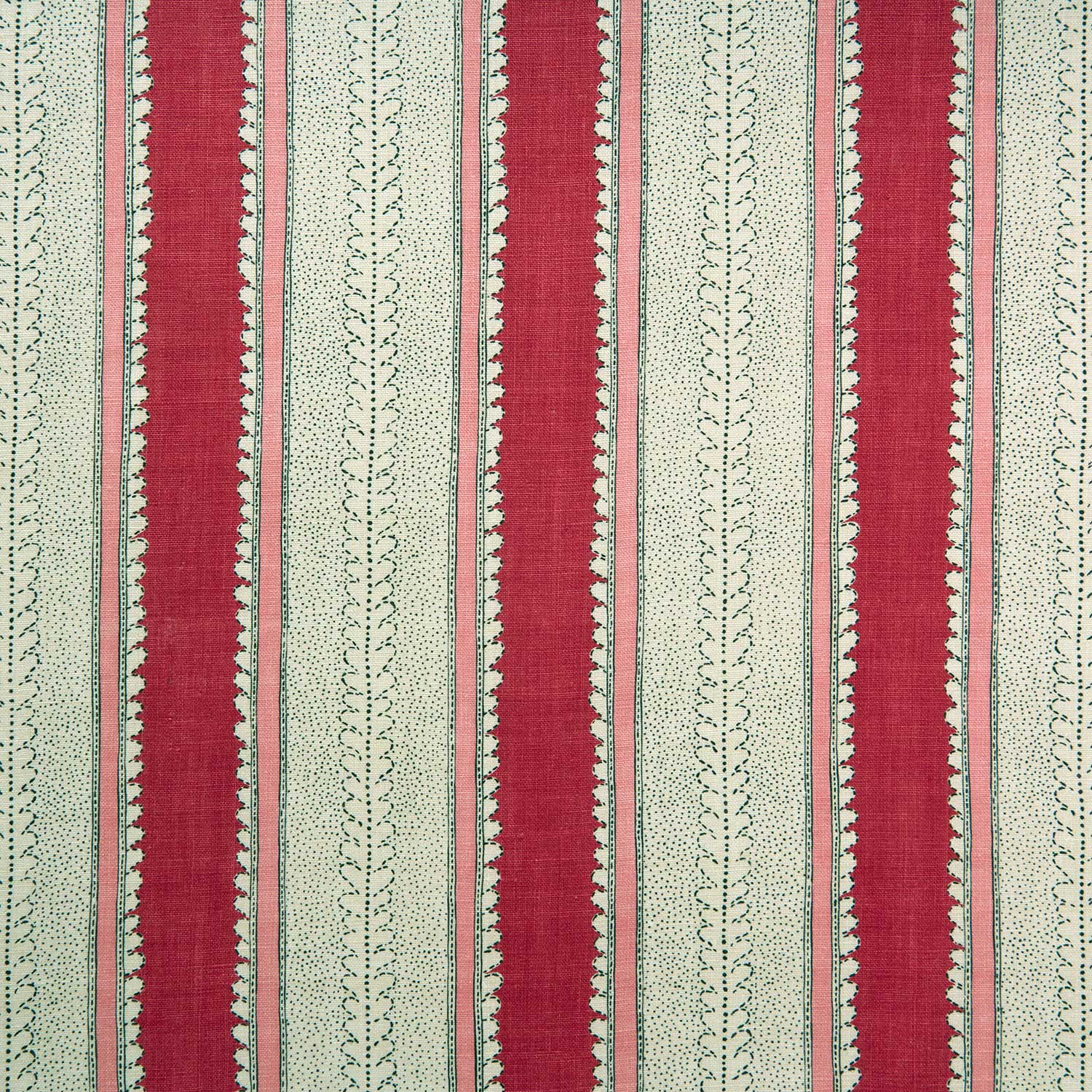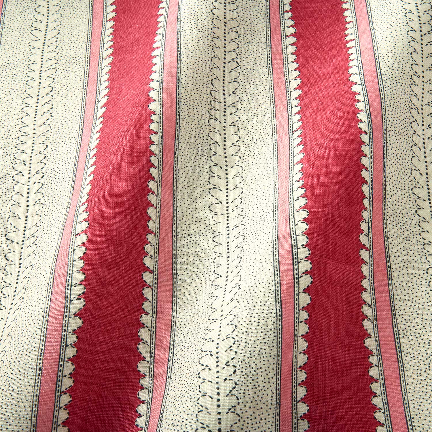 This lovely printed stripe on pure linen fabric, with its bright colour bands and subtle dots and dashes, is suitable for both curtains and upholstery.