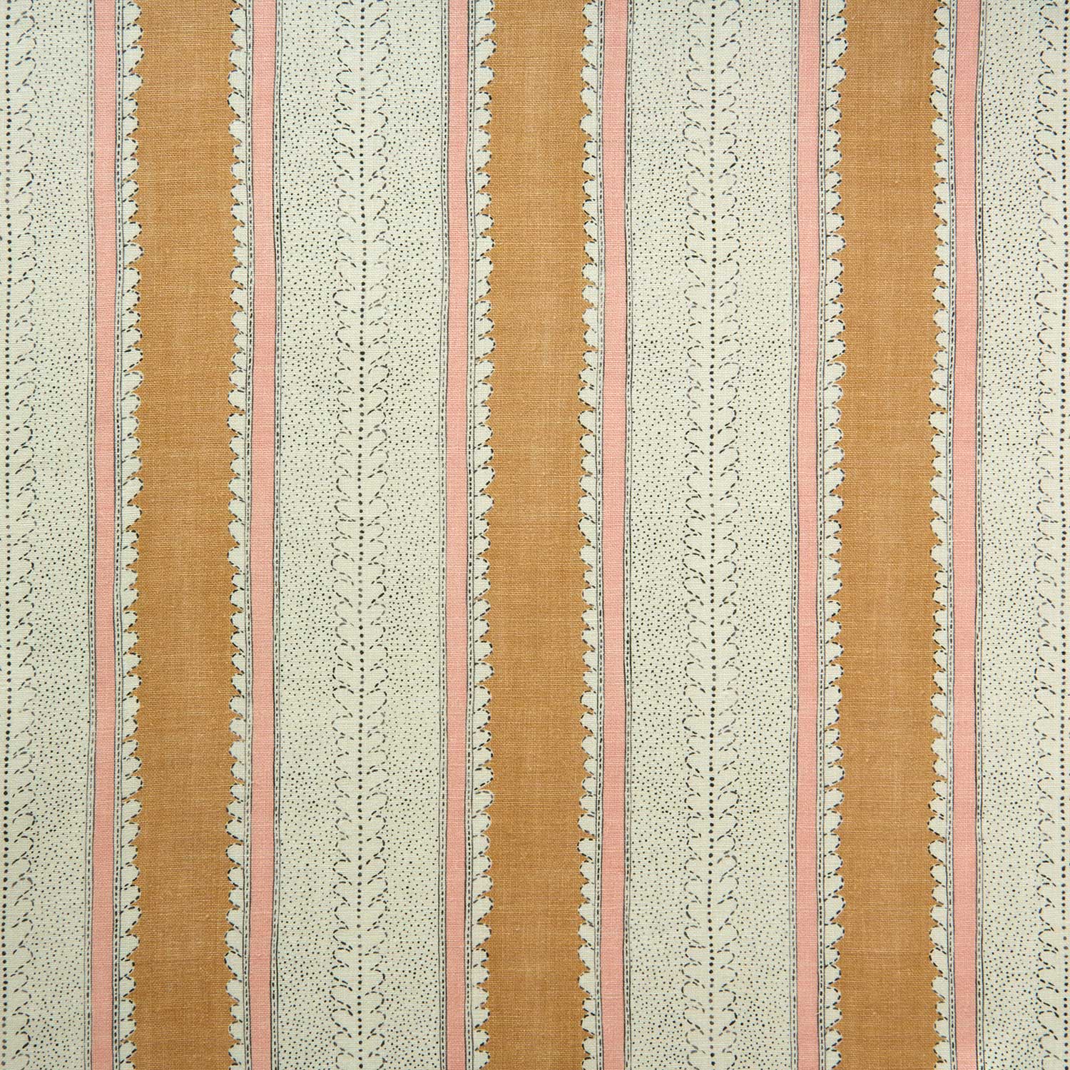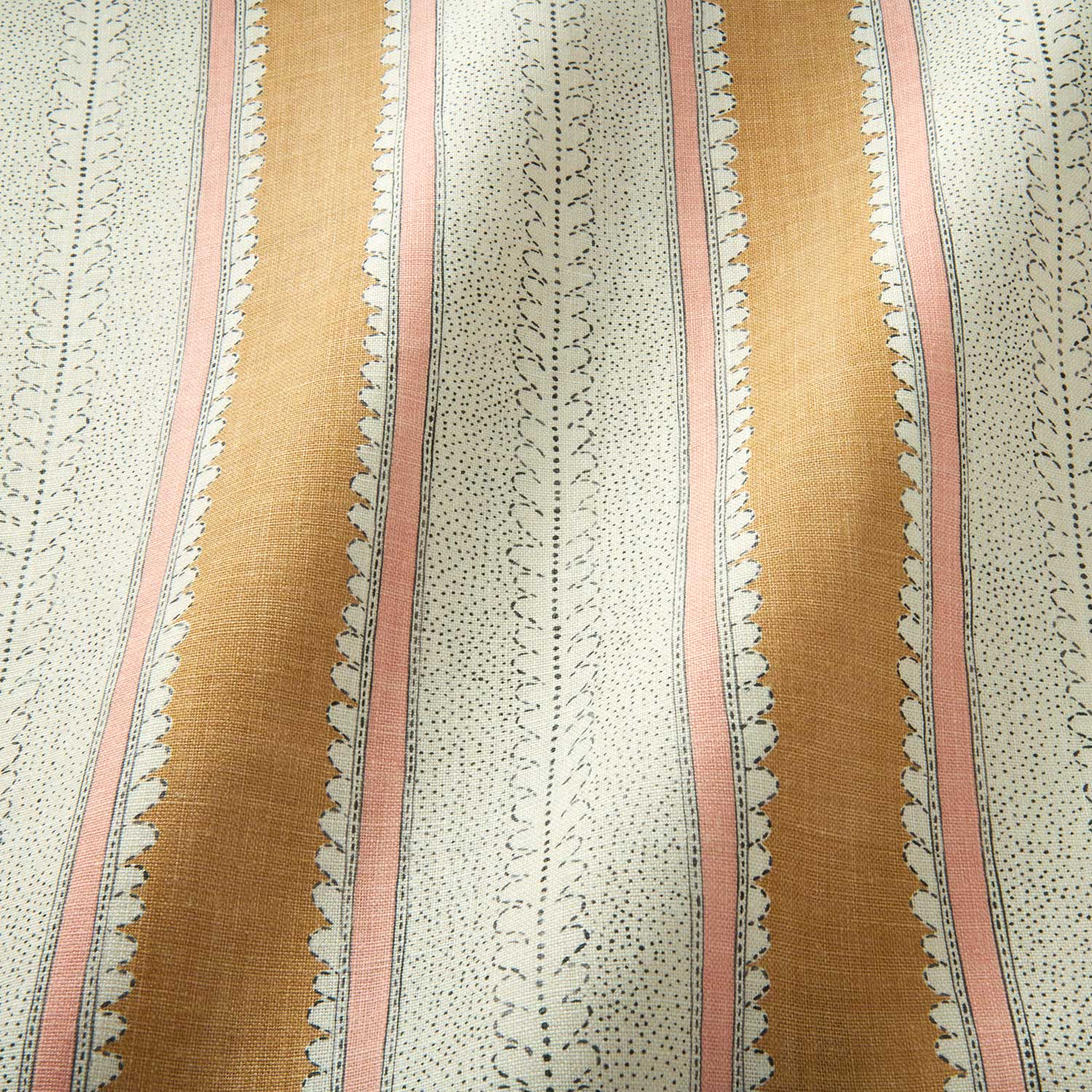 This lovely printed stripe on pure linen fabric, with its bright colour bands and subtle dots and dashes, is suitable for both curtains and upholstery.