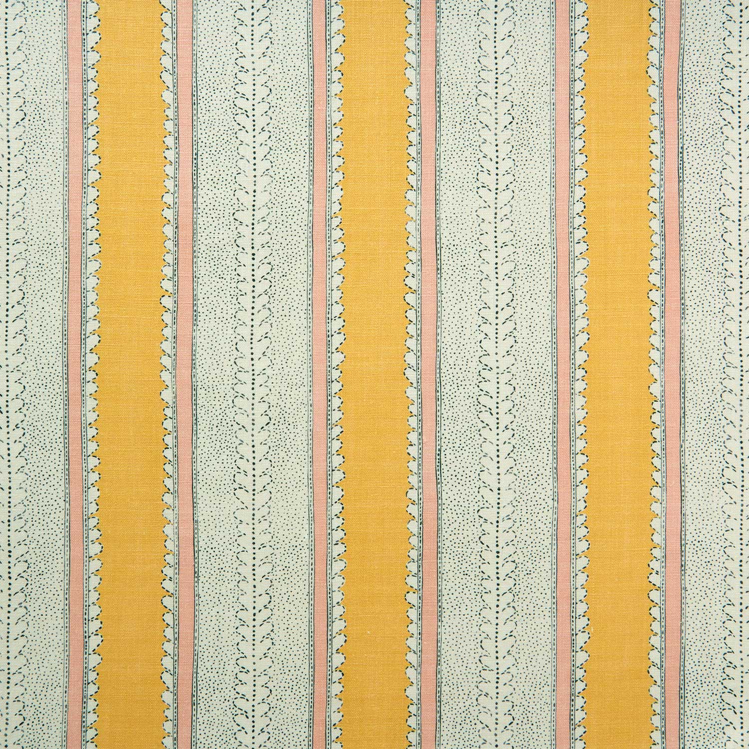 This lovely printed stripe on pure linen fabric, with its bright colour bands and subtle dots and dashes, is suitable for both curtains and upholstery.