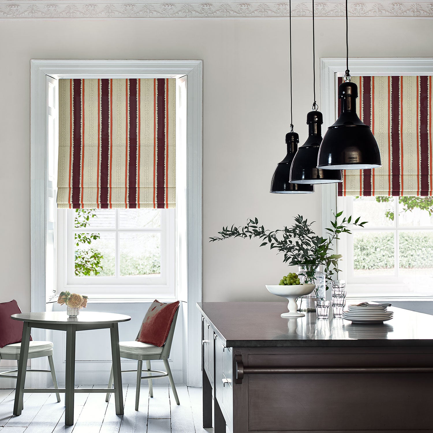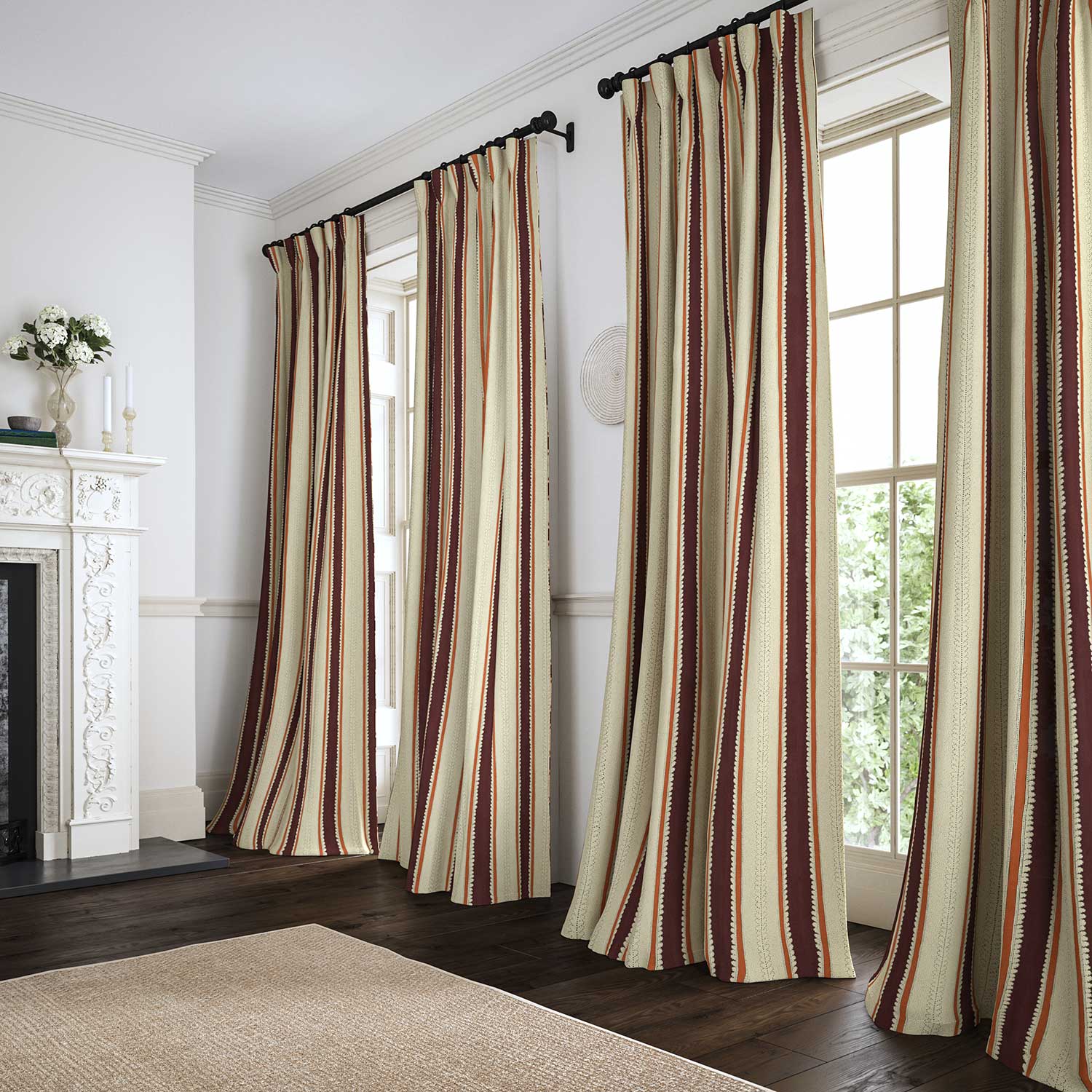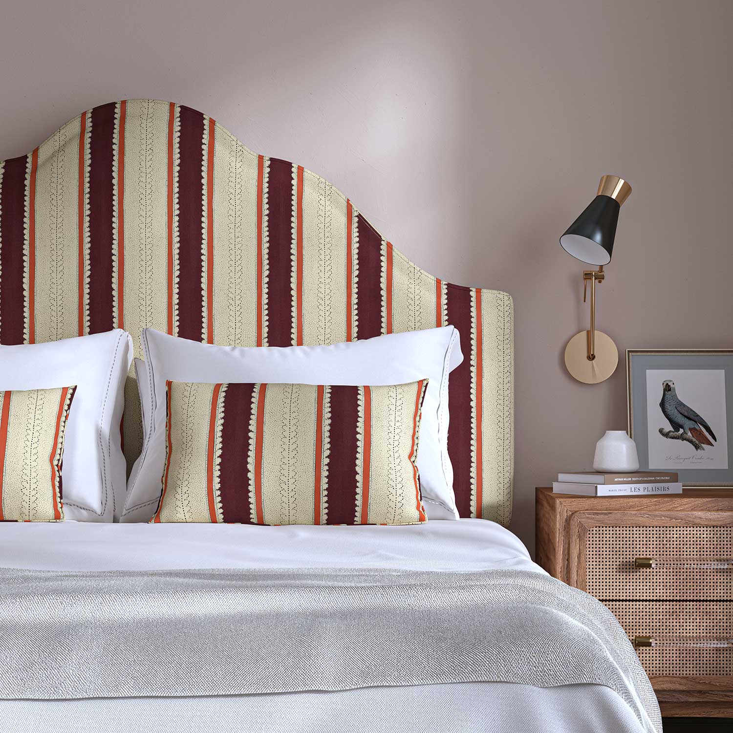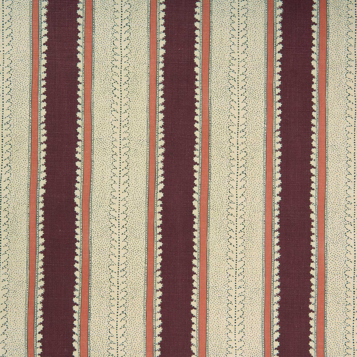 This lovely printed stripe on pure linen fabric, with its bright colour bands and subtle dots and dashes, is suitable for both curtains and upholstery.