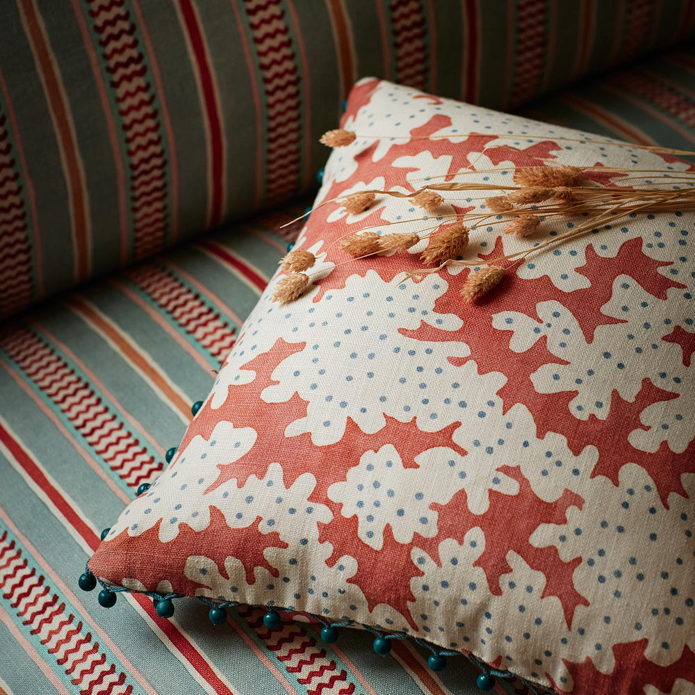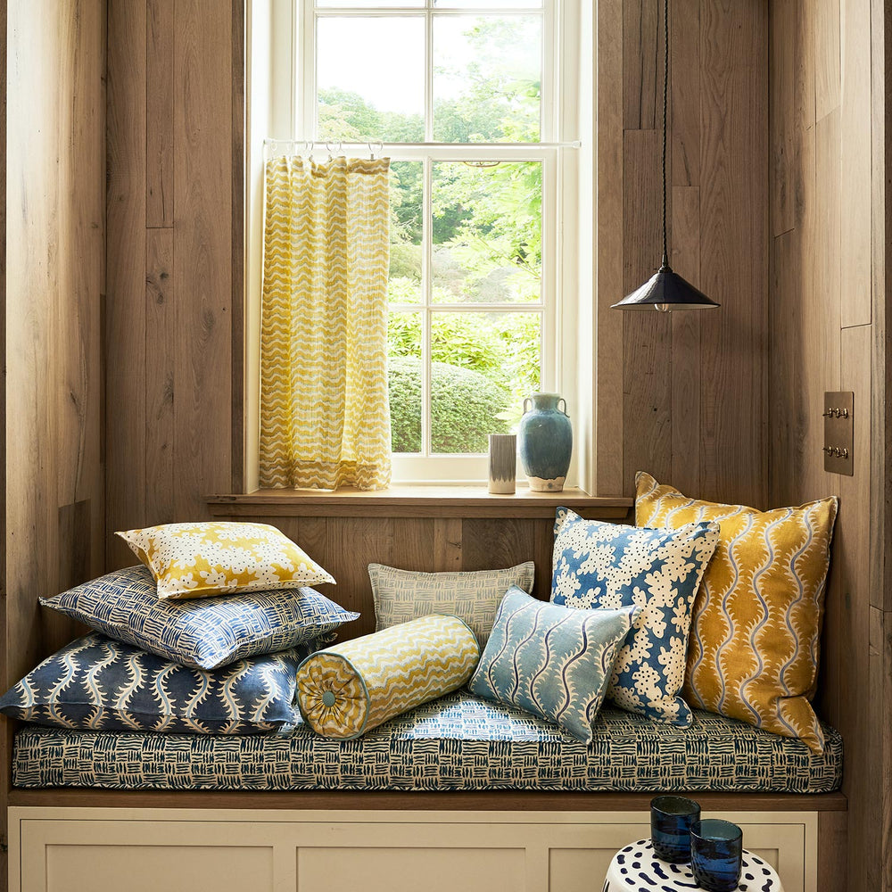This collection of small-scale designs builds on the success of our recent launches, Small Prints and Bibi. Five free-flowing geometric patterns featuring fun squiggles and undulating lines create a delightful impression. The designs are printed on a linen fabric that has a relaxed feel. In addition to sofas, chairs, and ottomans, Small Prints II is ideally suited for blinds and curtains. Every project may draw successfully from the chosen palette, which ranges from vivid hues to subtle pastels.