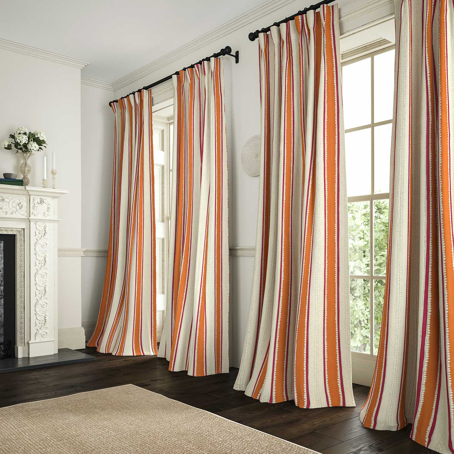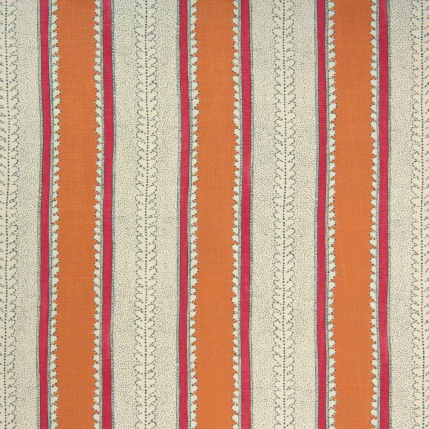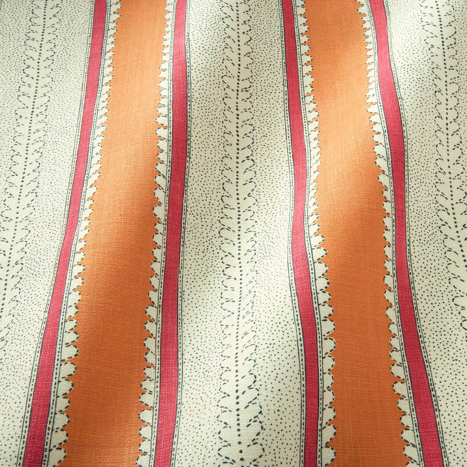 This lovely printed stripe on pure linen fabric, with its bright colour bands and subtle dots and dashes, is suitable for both curtains and upholstery.