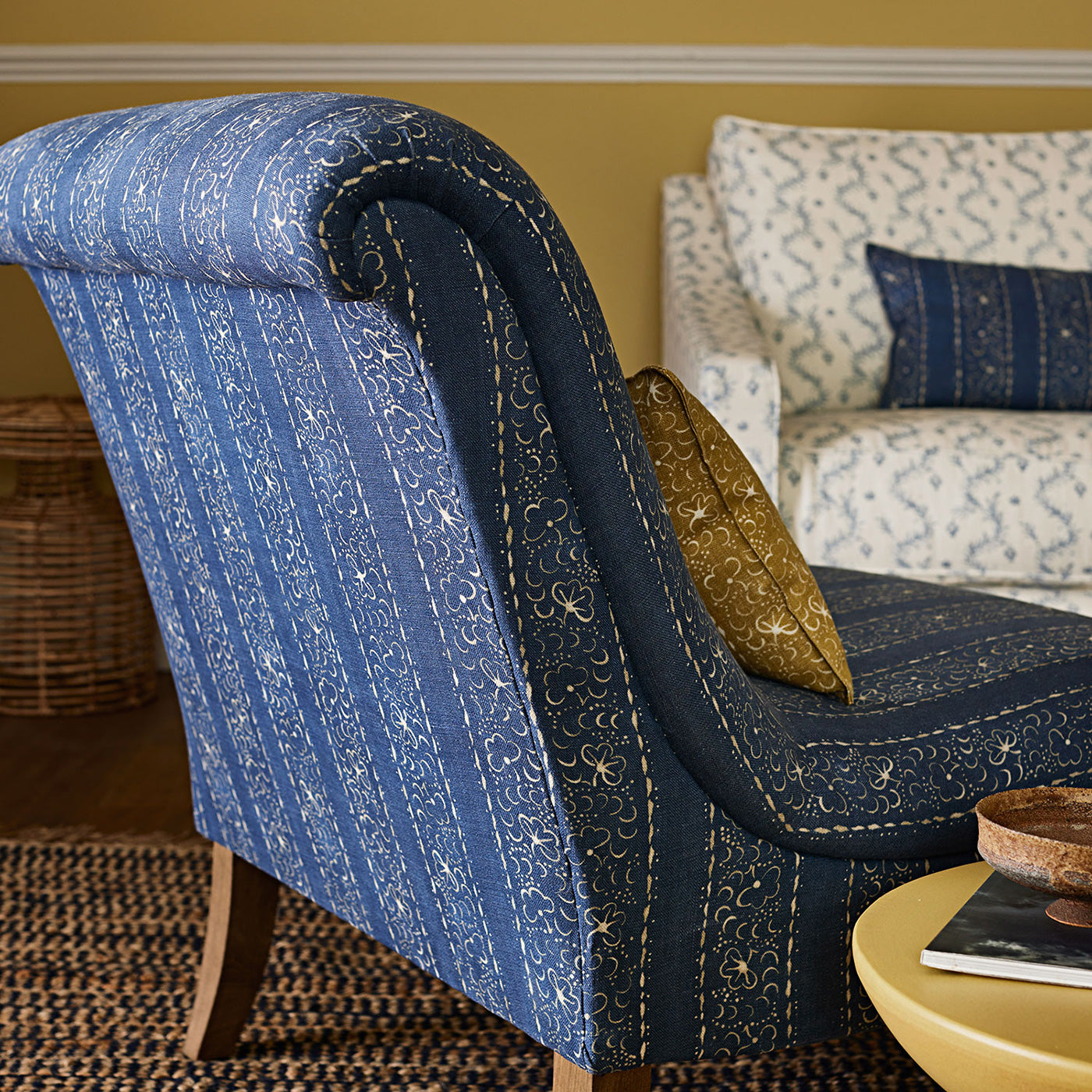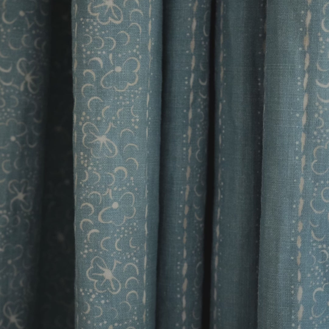 Use this stripe, with its delicate pattern of moons and star-like dots, for upholstery and drapes. Presented on the finest pure linen.