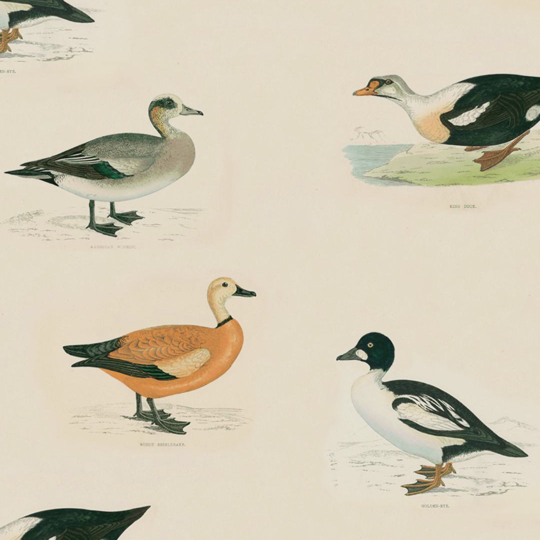 This decorative wallpaper, which is much loved at Linwood, features illustrations of ducks. A whimsical design that is part of the Ephemera collection.