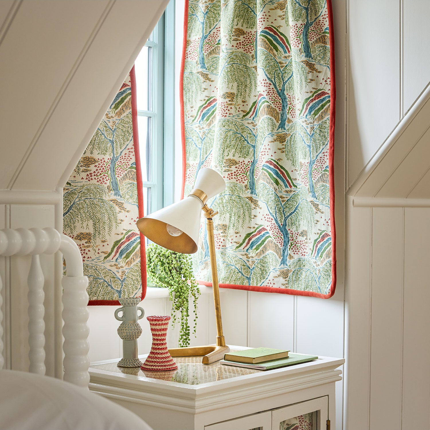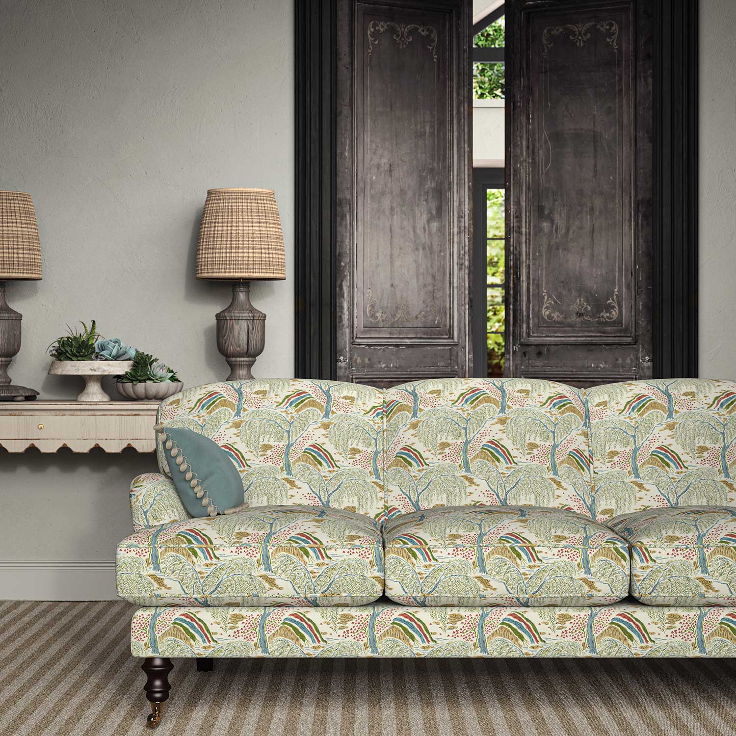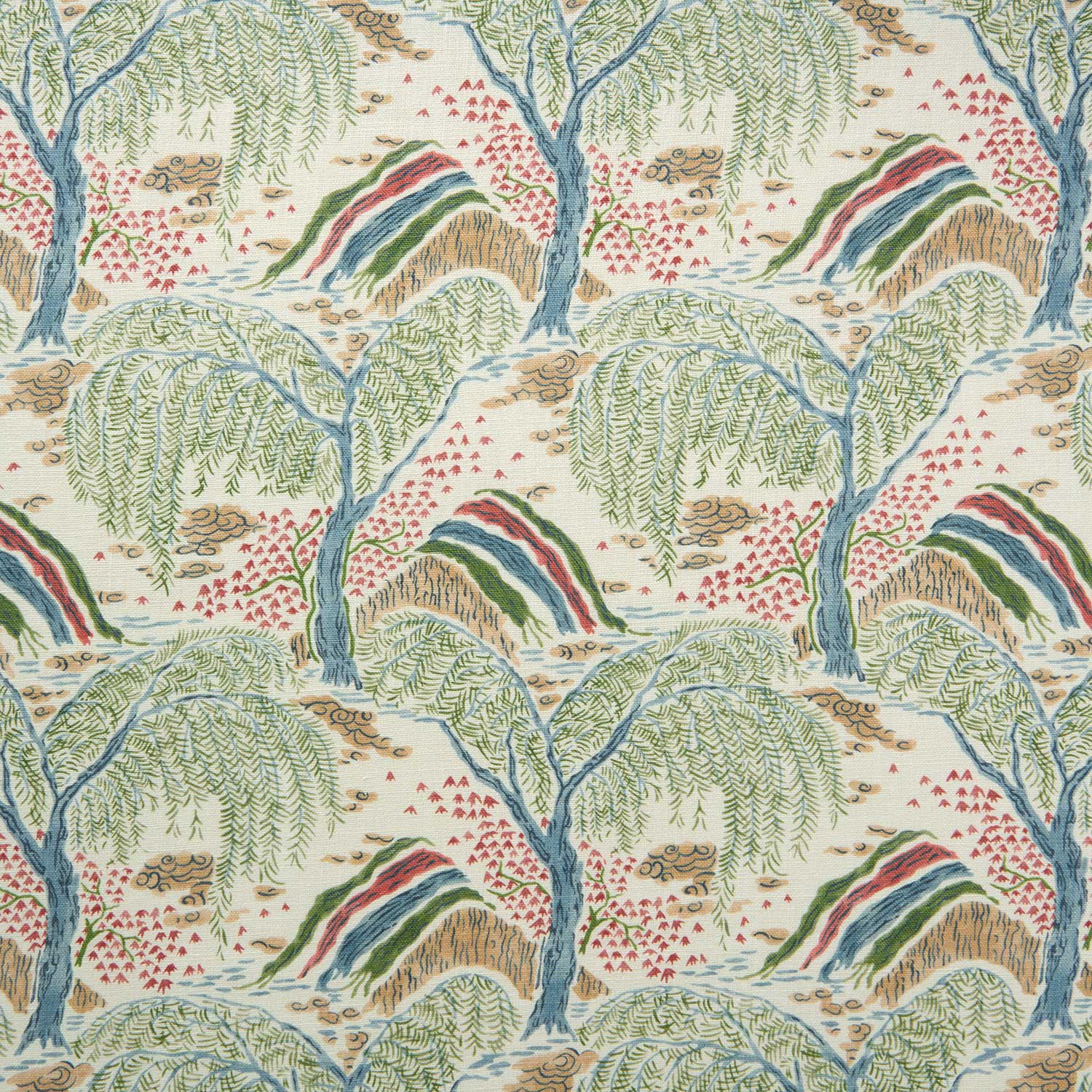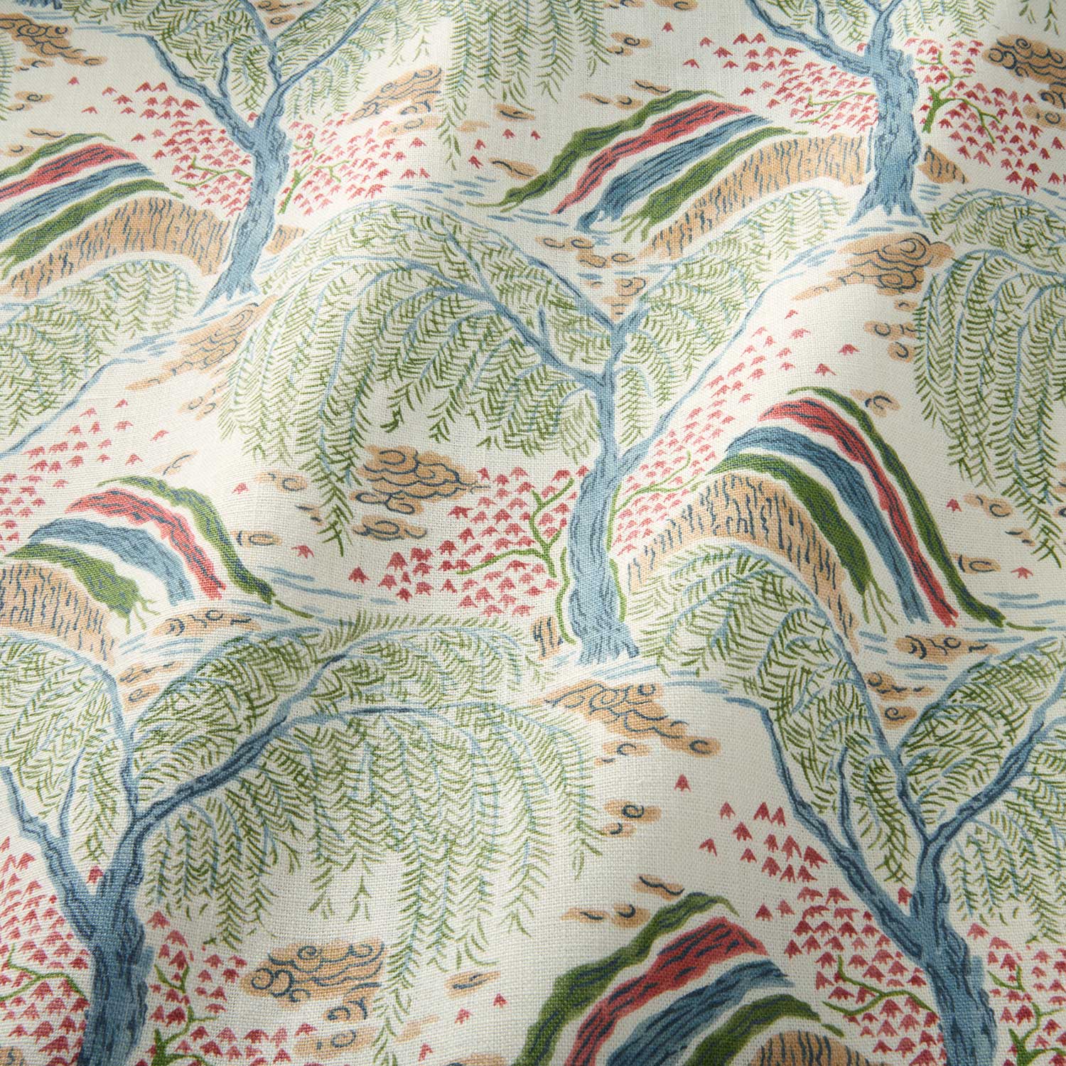 The scenic pattern is printed on linen fabric and captures the Orient's eternal charm. With its fine design details, such as fine leaves and restrained hues, it has a lovely quality that would look great on upholstery and curtains.