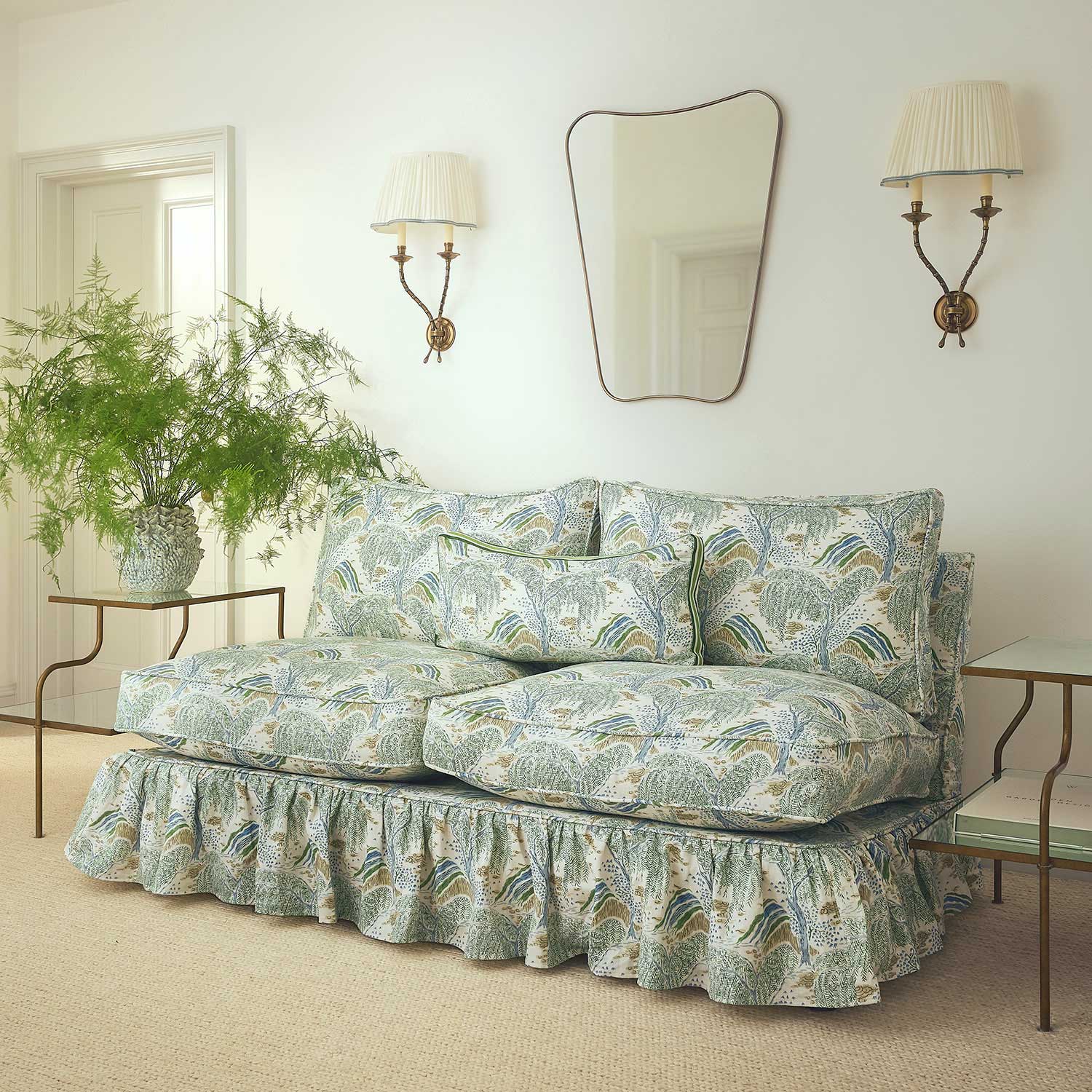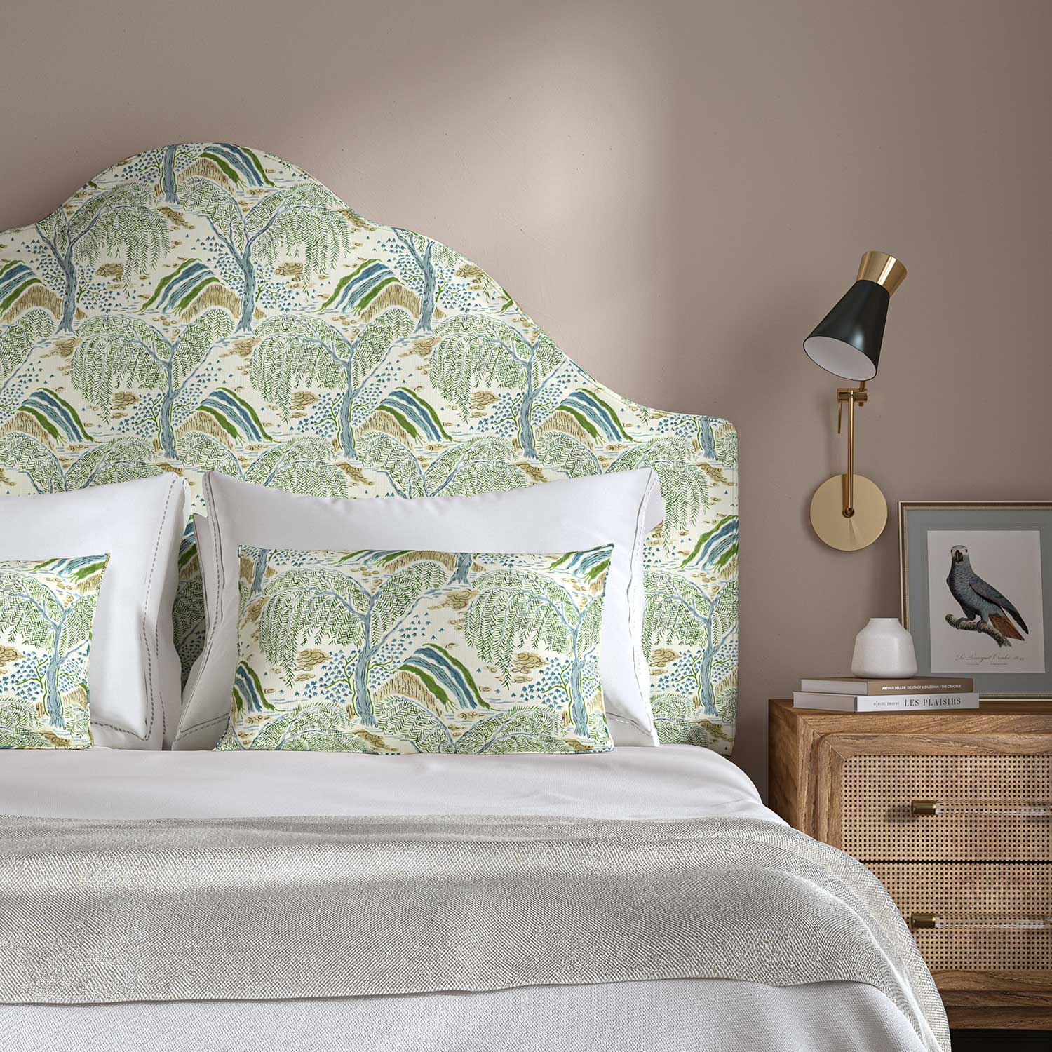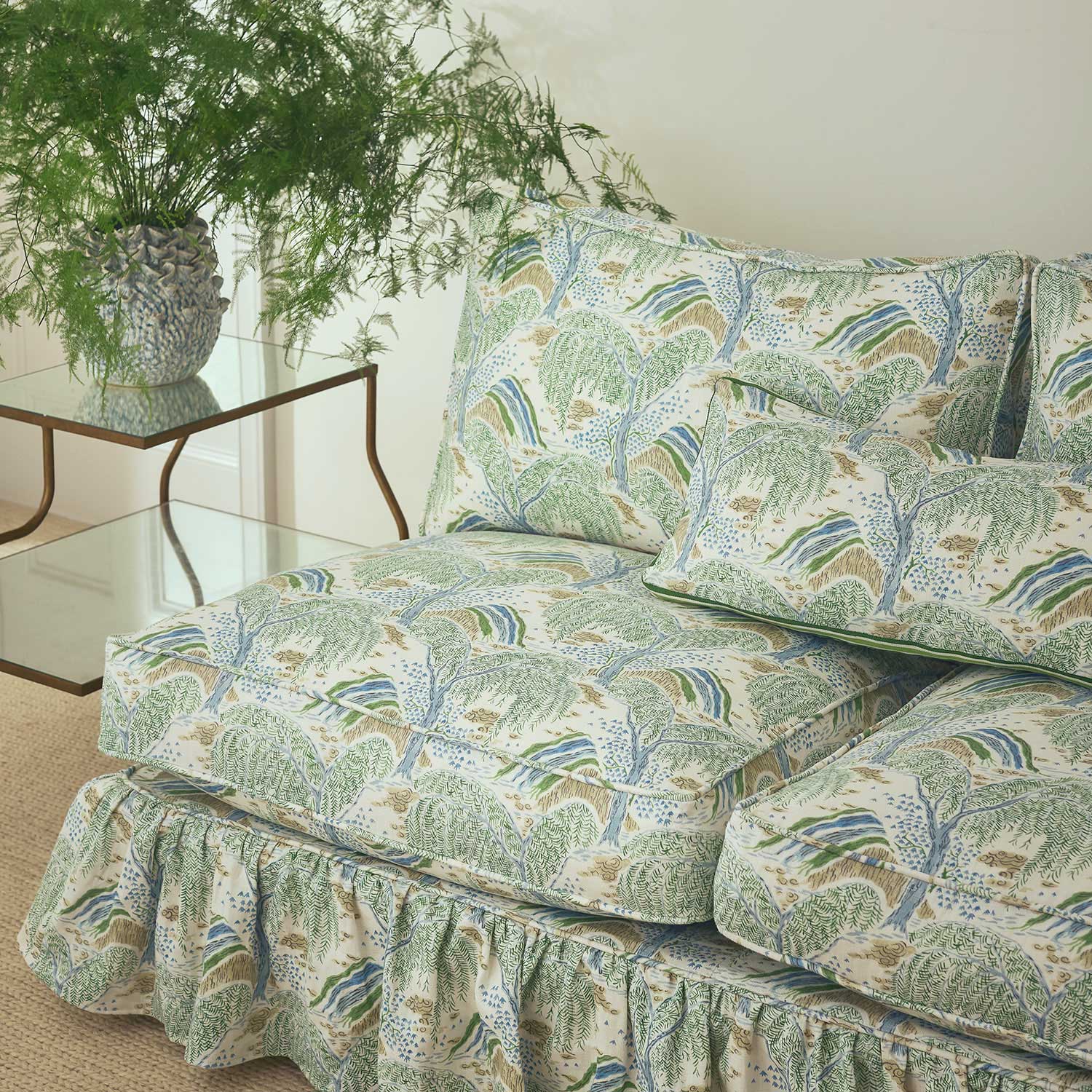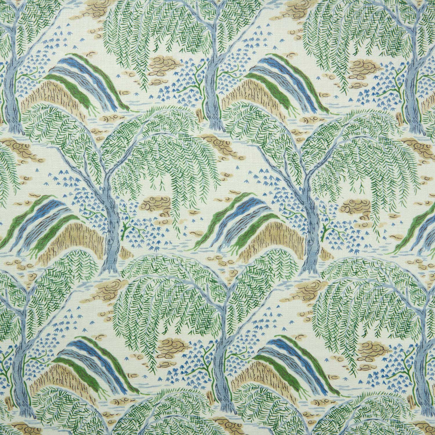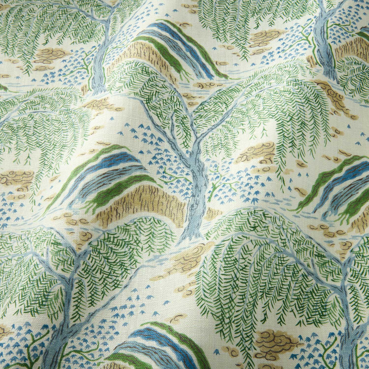 The scenic pattern is printed on linen fabric and captures the Orient's eternal charm. With its fine design details, such as fine leaves and restrained hues, it has a lovely quality that would look great on upholstery and curtains.
