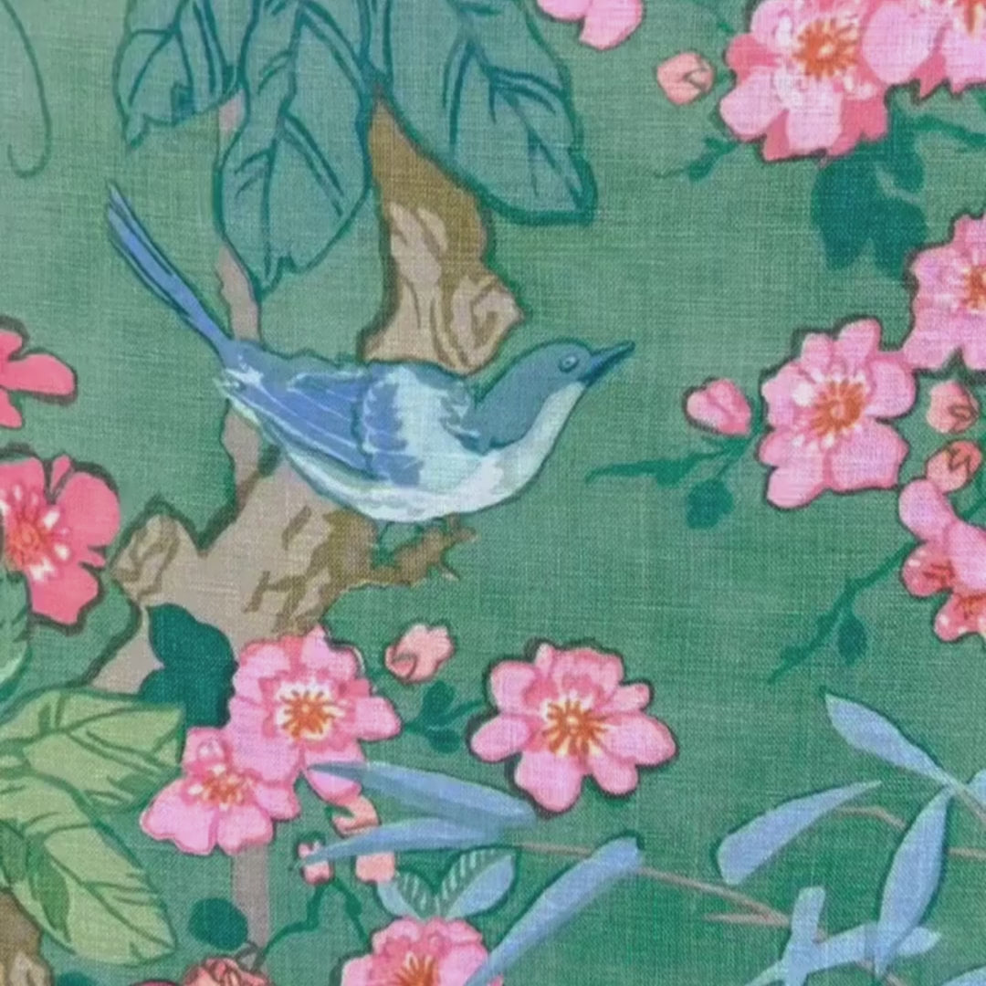 With its birds perched amongst fragrant blossom and bamboo, this floral design would be a glorious addition to any home. Printed on a casual linen fabric that is ideal for any interior design project.