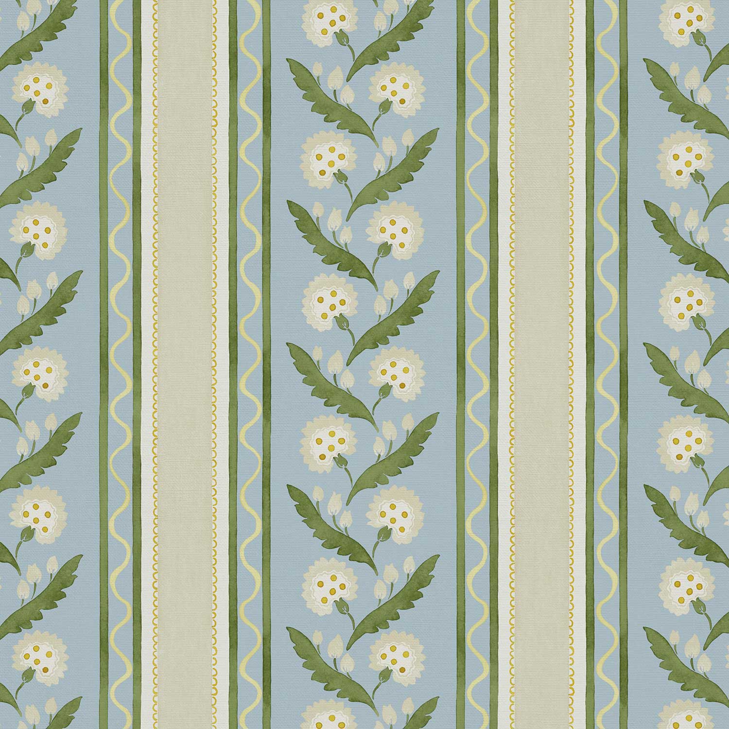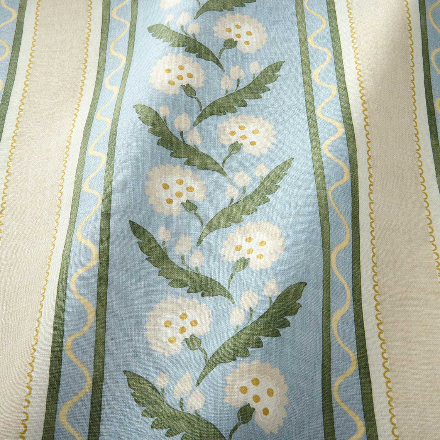This stripe depicts a stylised dandelion framed by bands of complementary colour, edged with a playful, wavy line. Printed on the finest textural linen fabric, Polly Stripe will bring a contemporary twist to every interior project.
