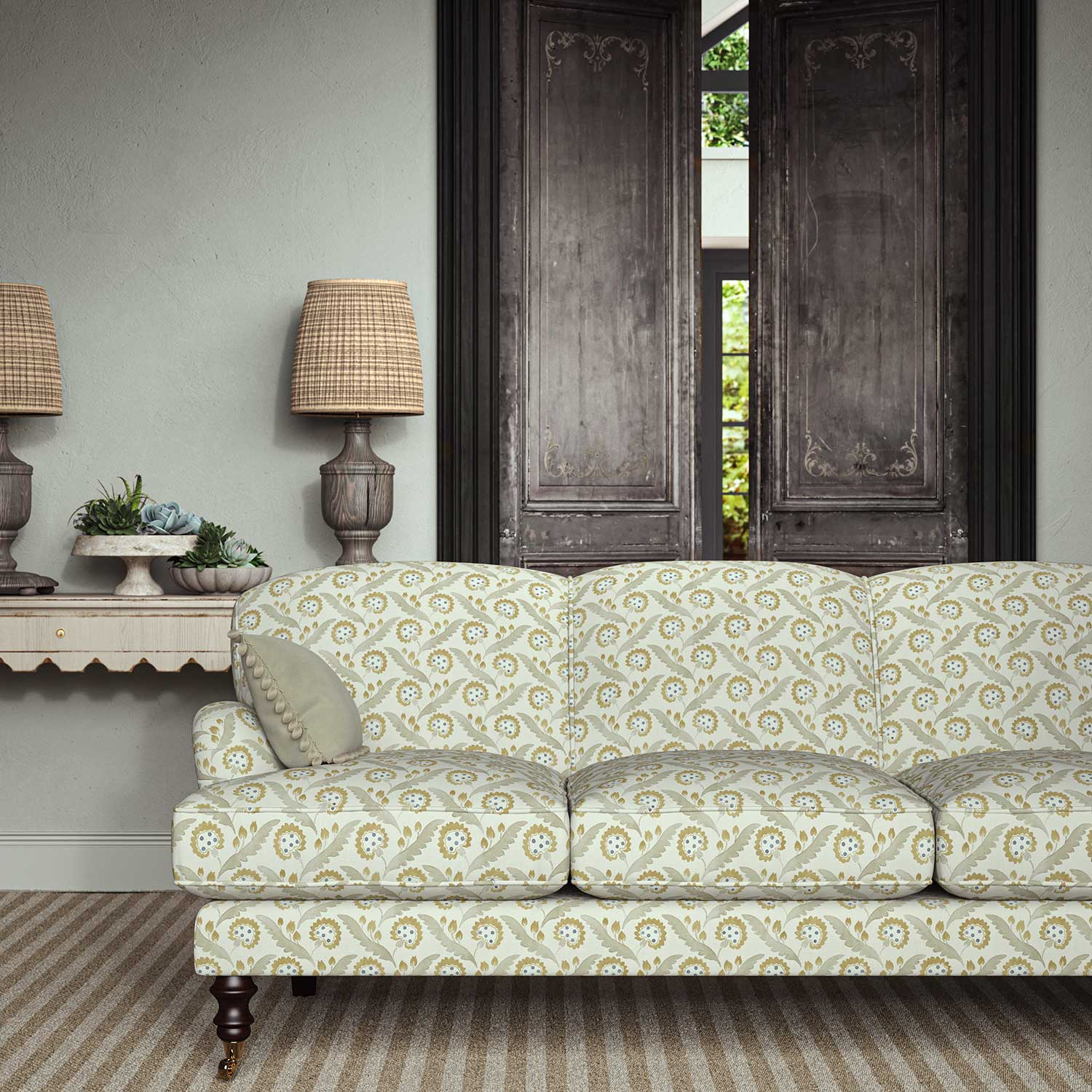 Polly, which was carefully hand painted using watercolours at the Linwood studio, features a stylised flower reminiscent of a dandelion. The resulting tonal design, presented on the finest linen, would bring a playful yet calming touch to any furniture or curtains.