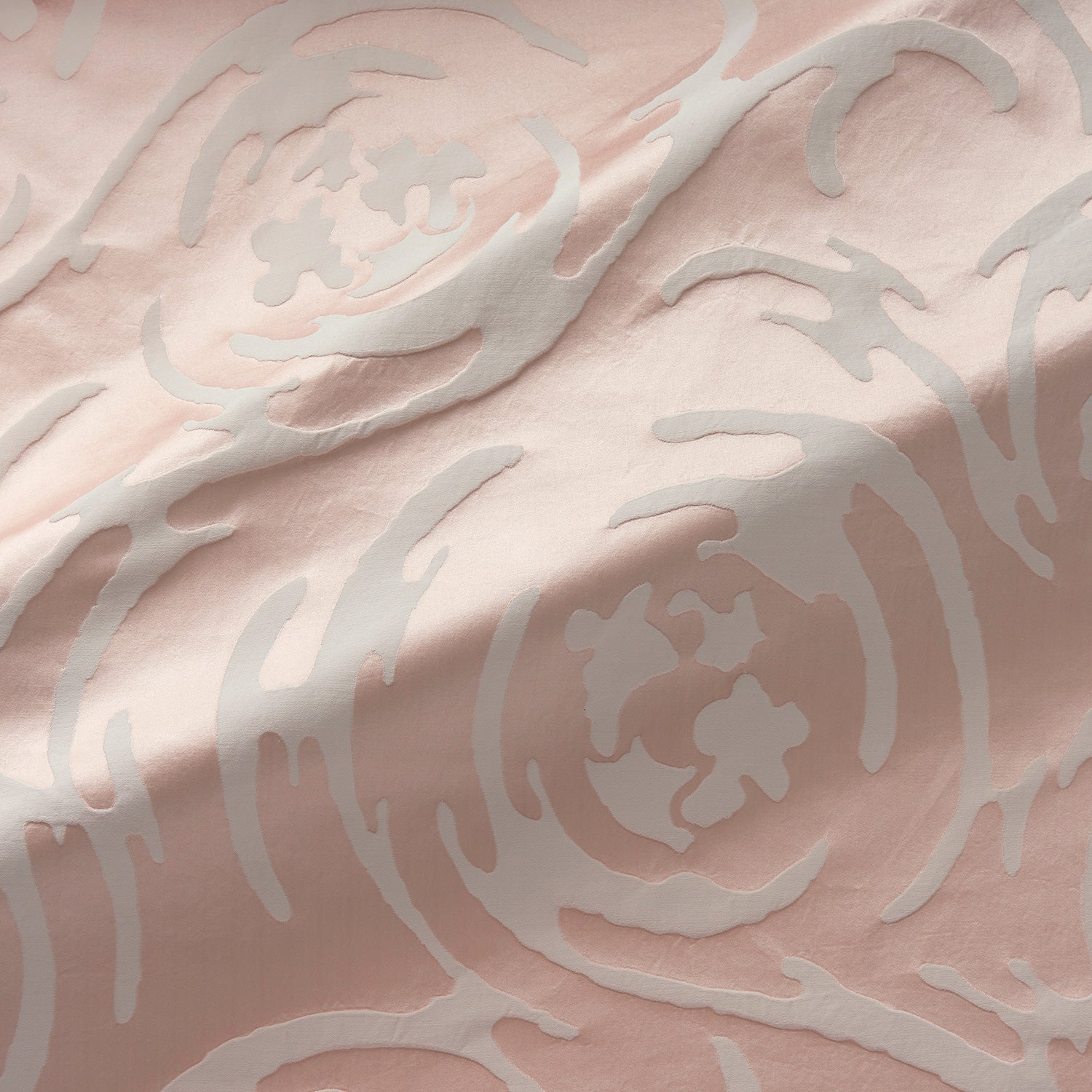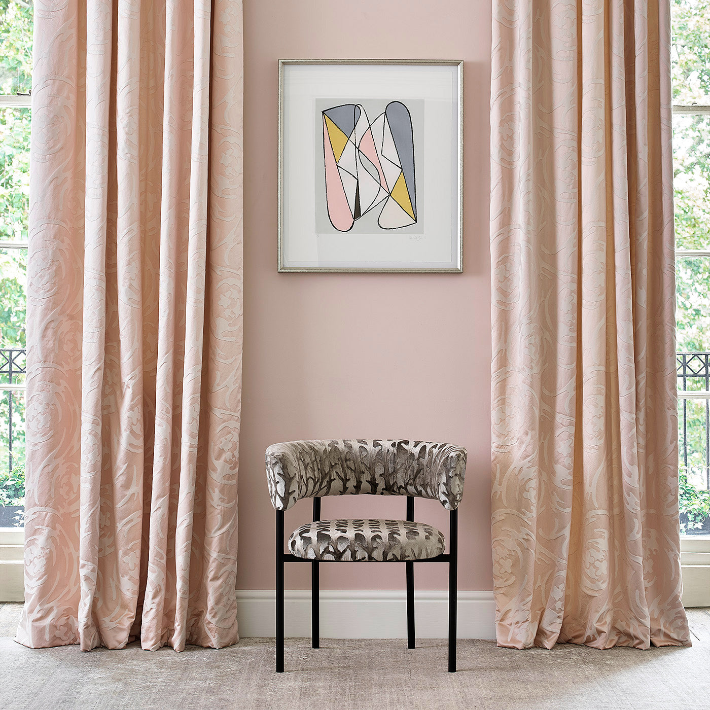 Designed for curtains, this swirly abstract pattern with an elegant relief is woven with silk and cotton.