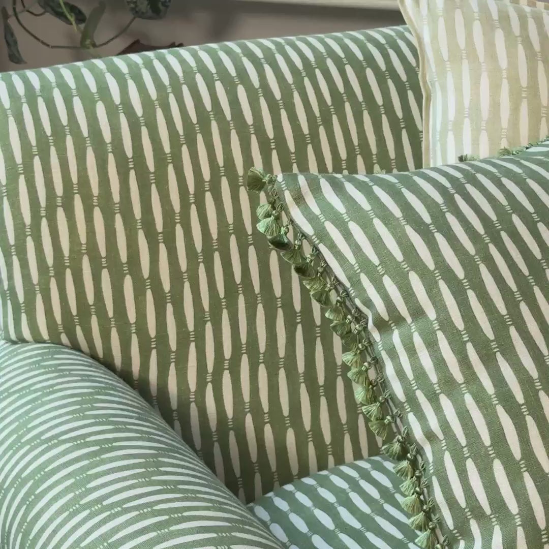 This beautiful small-scale pattern, printed on 100% linen fabric, will fulfil all of your upholstery and curtain needs. Smocked, which is based on a Japanese print, was repainted at our studio in Hampshire. The resultant design is filled with fascinating tonal movement.