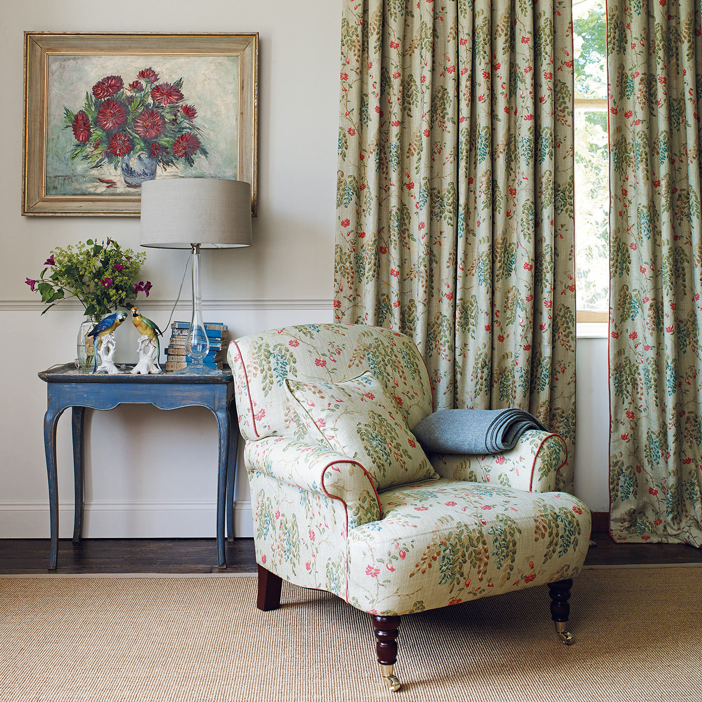 Available in two subtle colours, this stylised wisteria design has a timeless quality.